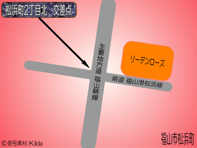 場所は、福山市の松浜町。国道二号より、r22主要地方道福山鞆線に入り、少しのところです。
