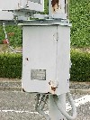 倉敷市加須山 帯江亀山バス停付近の交差点 午後1時35分 名称/プログラム「多段」式交通信号制御機 広島では松下の集中機以外の箱はまず見かけません。 |