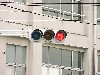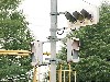 岡山市門田屋敷 電車用灯器「デ」 岡山の路面電車用信号は変ったものが多いのですが、 |