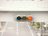 倉敷市玉島柏島 柏島交差点 懸垂アームによる樹脂製信号 交差点の中央に懸垂式アームで信号灯器をぶら下げた3差路です。 |