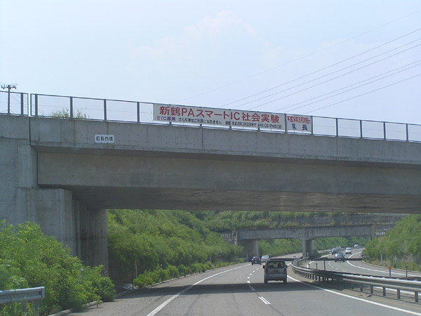下段写真は、日本海東北道開通直前に撮影したもので、まだ道路名称の部分に目隠しが施されている。