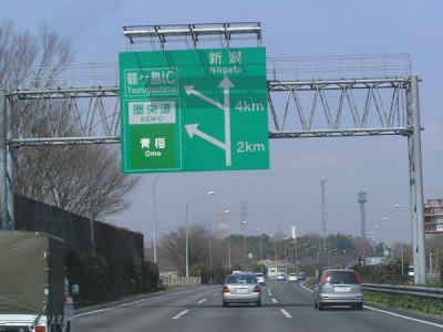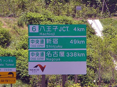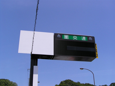 ![]() ▲八王子西IC 入口案内、電光表示板 標識には新宿,名古屋方面と関越道方面の案内があった。 |