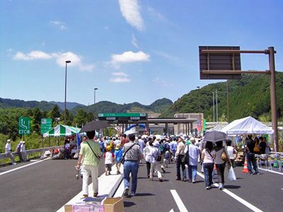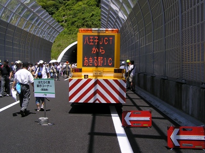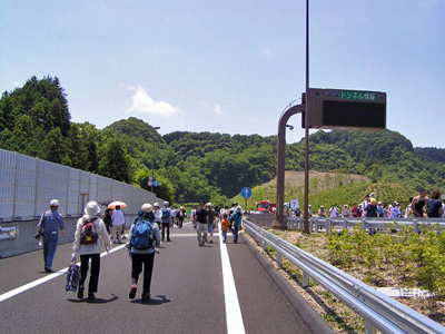 去る6月17日、目前に迫った圏央道あきる野IC〜 八王子JCT間の開通を記念して、開通前の高速道路を歩く というイベントが行われた。『未来の火フェスティバル』、今 回のイベントには『ゆーきのホームページ』管理者、 青島ゆーき氏と共に参加をしてきた。 会場では地の名産品などが販売されていたり、nexcoから は緊急用の車両が展示されたりとウォーキング以外にも 大いに盛り上がった。区間は短かったものの、とても充実 した内容であった。 |