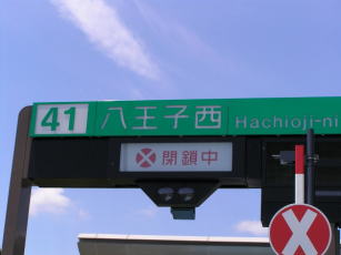 ![]() ▲八王子西IC付近で発見した標識 開通前なので白いマスクで隠れている。 |