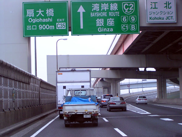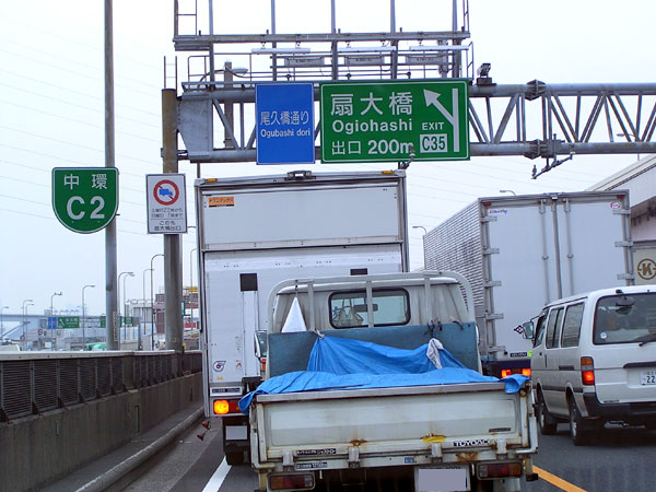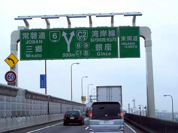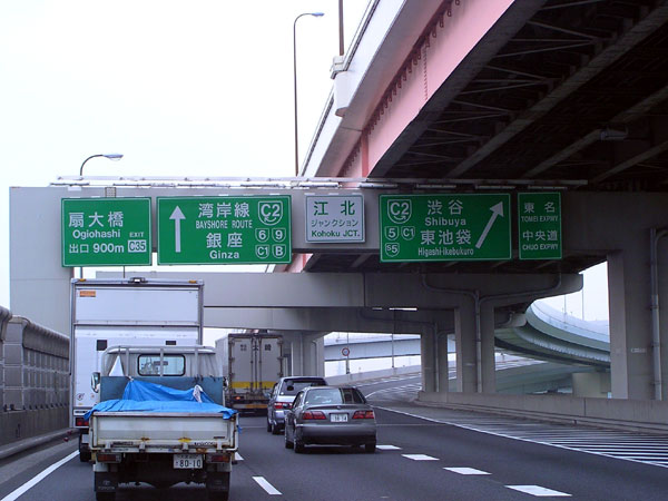 通常、首都高速の標識はJHのフォントとは違った通常のゴシック体の