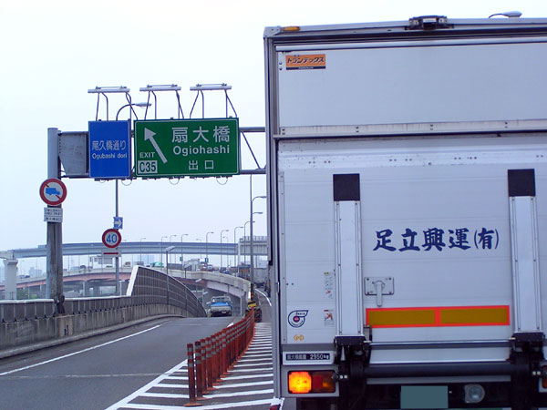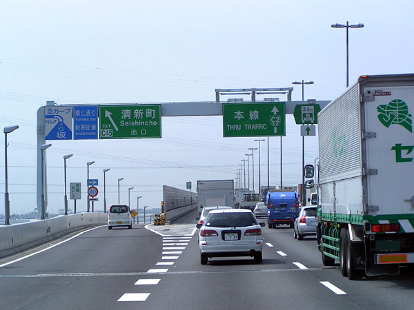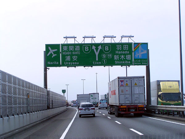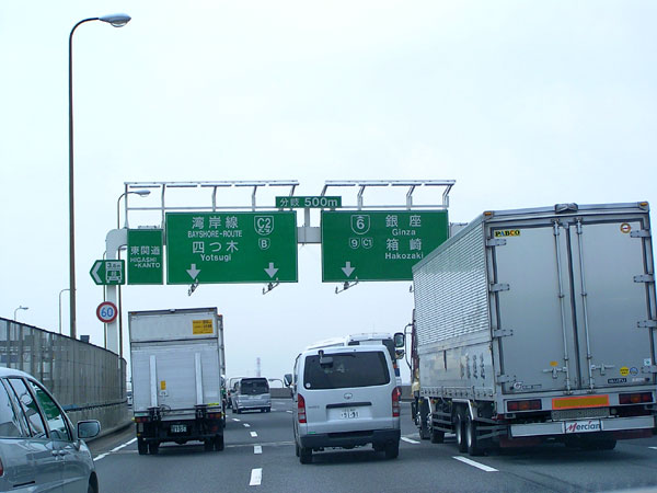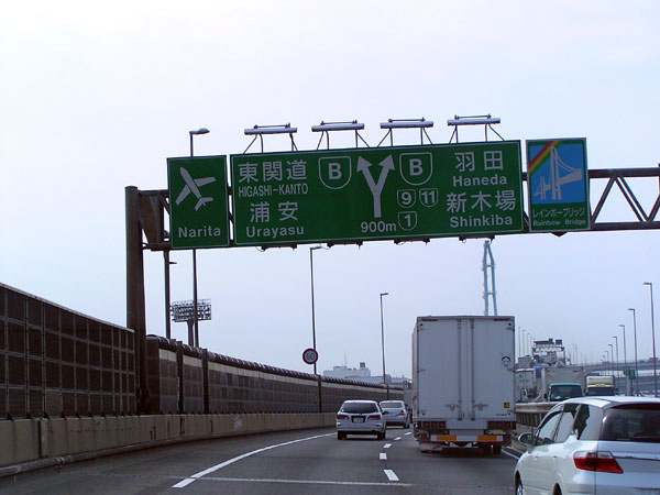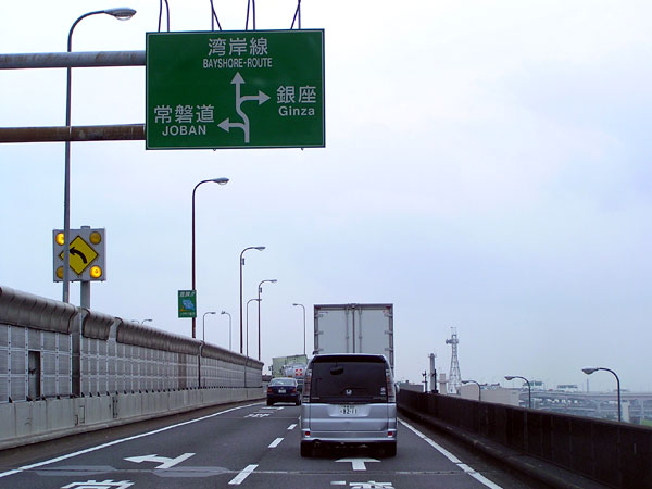 羽田空港、新木場、レインボーブリッジ方面は直進。