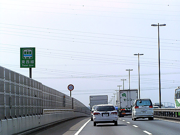 東西線をまたぐ。東西線用にか、電車の帯が青になっている。