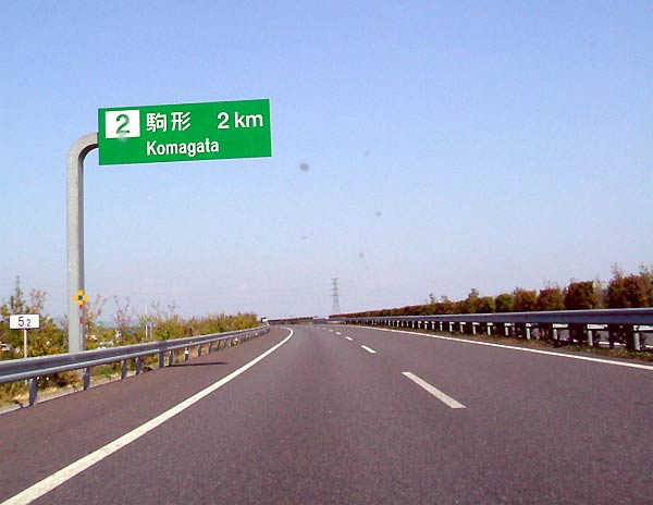 高速道路の標識では通常、町名などを表記する際は、名称の後ろに
