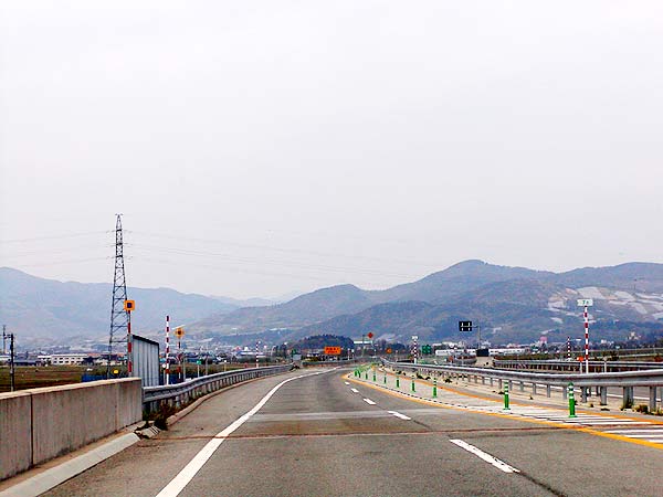 米沢北ICは将来、フルインターチェンジ化する予定なので、この様に本線には少々迂回した形で進入する。