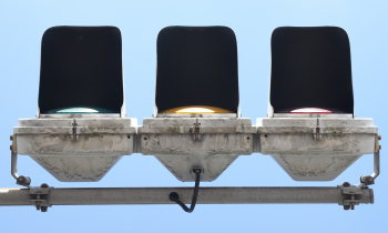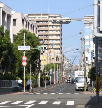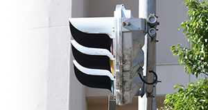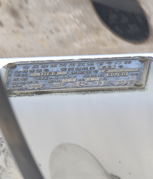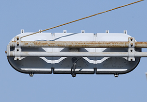 電材分割灯器の250φレモンレンズ仕様です。この灯器は。銘板が逆さについています。 鹿児島県では昭和の終わりごろから多く設置されており、残存数も比較的多いです。
