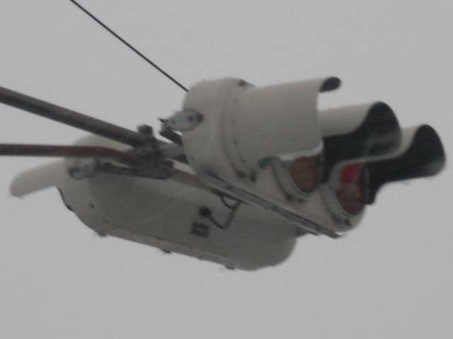 北区北33西6 | 鋭角交差点なので、認知防止庇になっていますが、なぜか赤の庇だけ横向き庇になっています! |