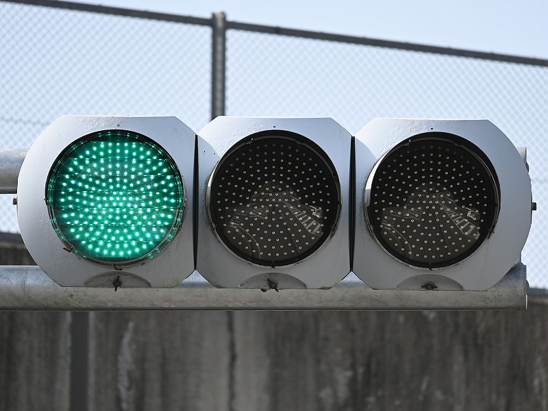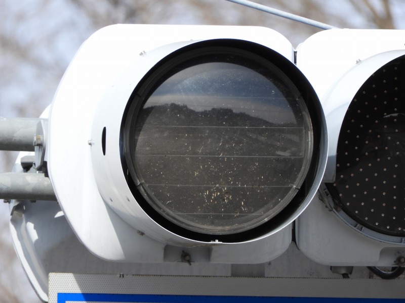 小野I.C.付近にある灯器です。この交差点は2連続交差点となっており、青だけルーバーとなっています。ここまでは普通なのですが、、なぜかルーバーの付いている青のみ、透明なカバー(?)のようなものが付いています。当初は雪対策のものなのかと思いましたが、設置場所は東北といえどさほど豪雪地域というわけでもなく(そのため、灯器は基本横型です)、何のためのものなのか謎です。このようなものは初めて見ました。 2018年に撮影した当時は小糸製のもののみを撮影し、見逃してしまっていたのですが、隣の交差点には日信一体型灯器のものも1基だけあったことが後からわかり、2023年に再度撮影しに行きました。日本信号製のもののほうも青だけルーバーでなぜか青だけカバーが付いています。 |