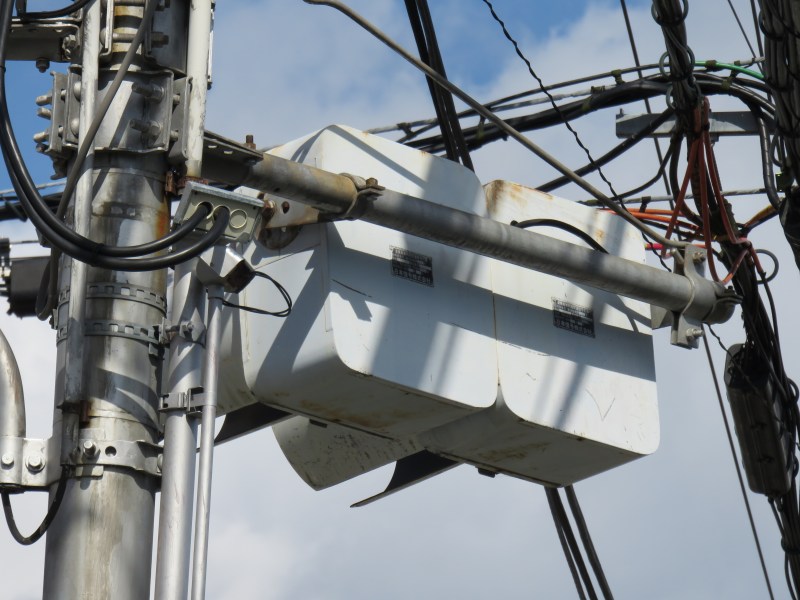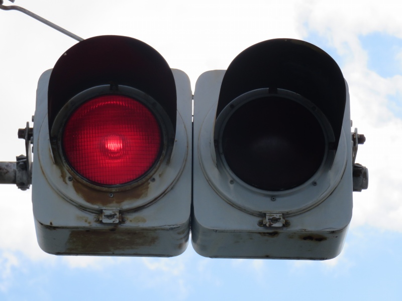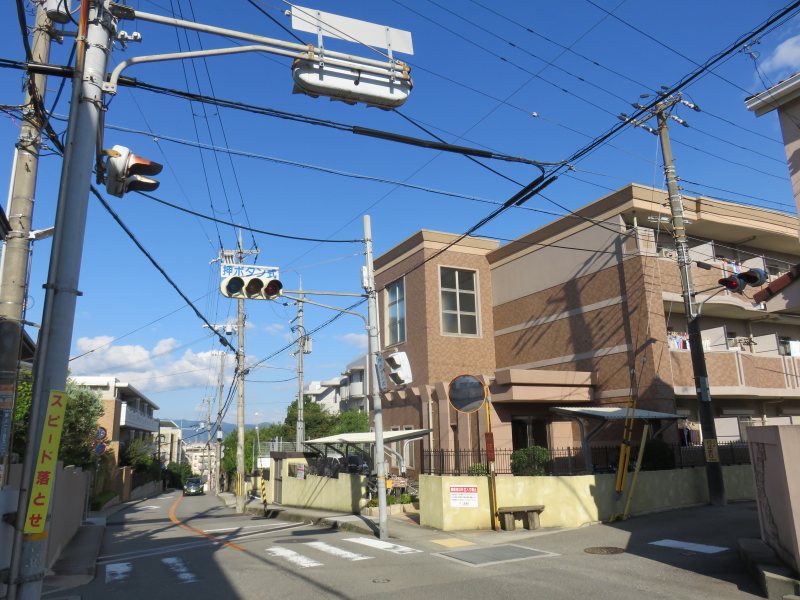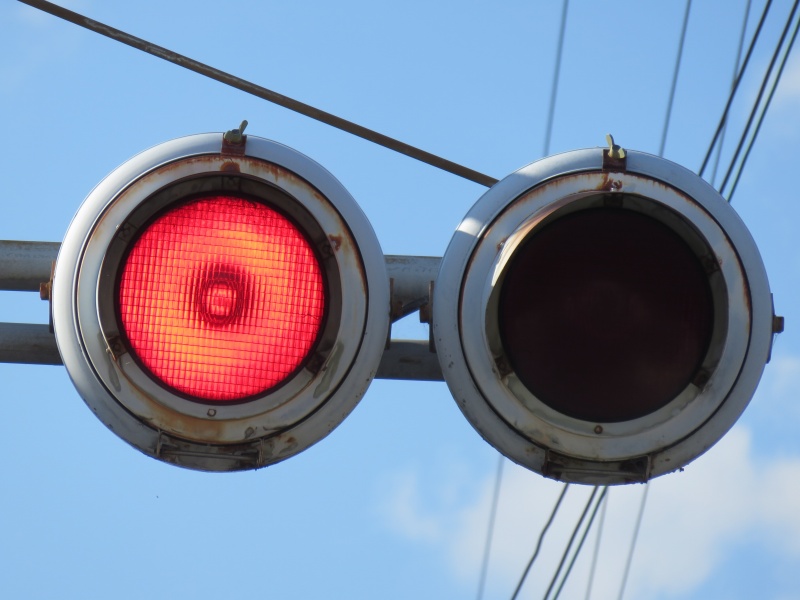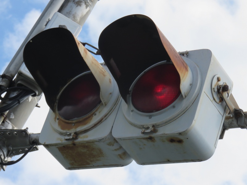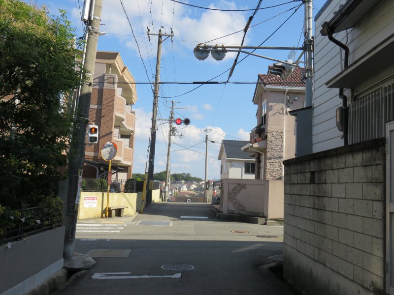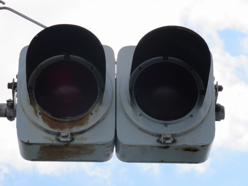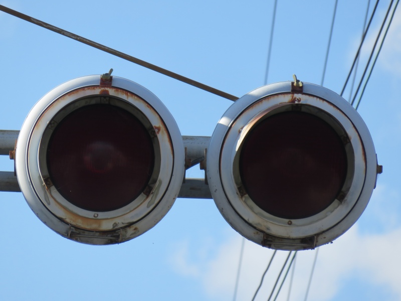 兵庫県内では交通量の少ない道路向けに赤赤灯器が設置されていますが、古い世代の灯器もいくつか残っています。この交差点にはNS3代目250の赤赤灯器が2基(2セット)あります。赤1灯を2基繋げて赤赤の2灯にしているようです。そもそもNSの3代目の1灯自体なかなか見られなくなりつつあるので大変貴重ですね。1基は認知防止庇となっています。他で見る赤赤と同じように 進行させるときが左赤点滅、通常は右の赤が点灯します。昭和53年製です。