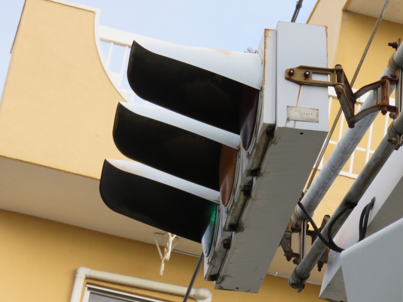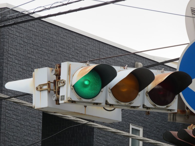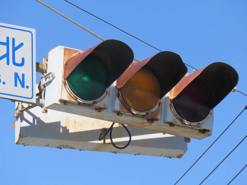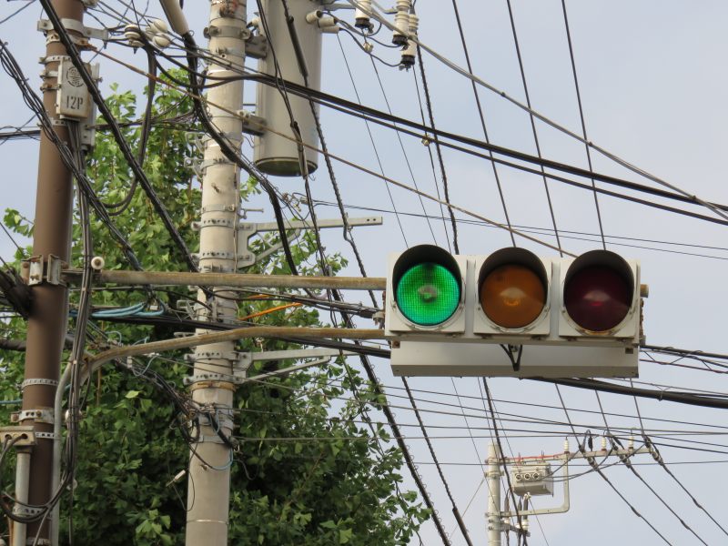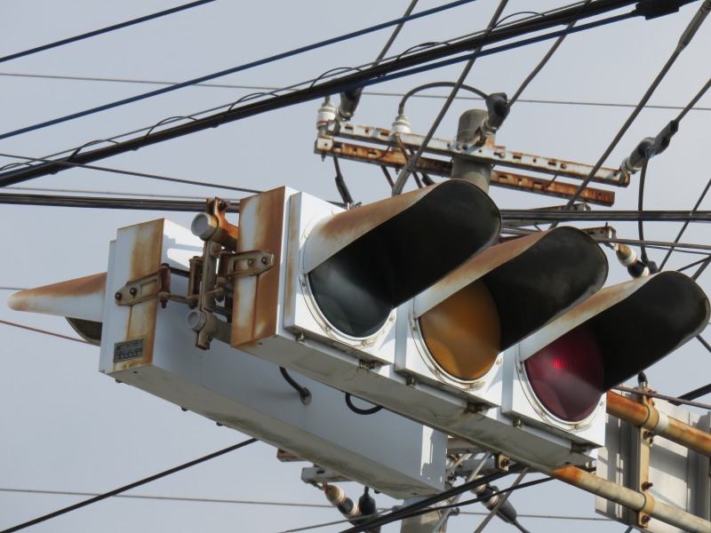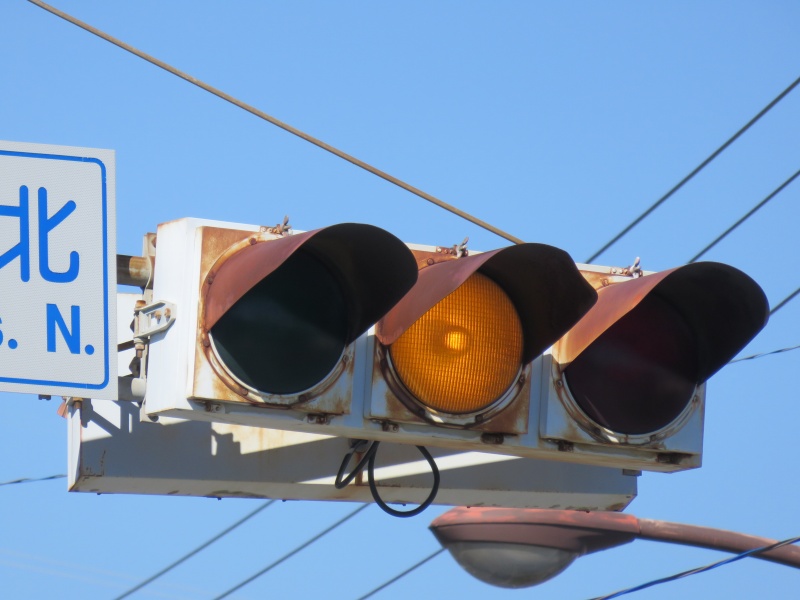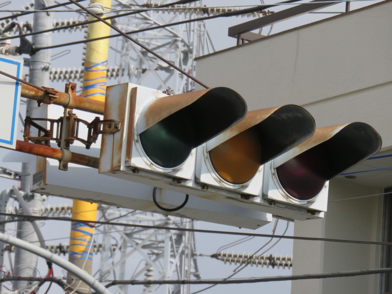 (情報提供感謝:森リンさん) こちらも横浜市内の住宅街に残る2基セットですが、なぜか直線アームに設置されており、また狭い路地の押しボタンなので節約設置で1セットしか設置されていません。なかなか面白い設置ですね。
