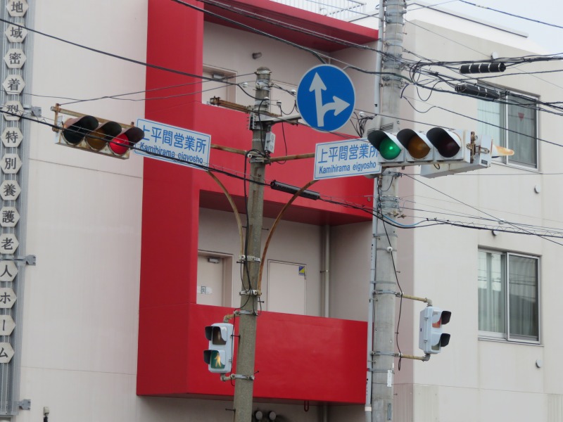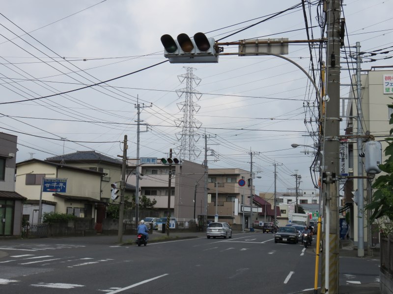 かつて2基セット角形がたくさんあった平間地区にあります(2015年現在その大半が撤去されました)。この交差点にはこの2基セット角形1基と、普通の片面角形2基ある大変貴重な交差点で2015年3月現在まだ残存しておりました!