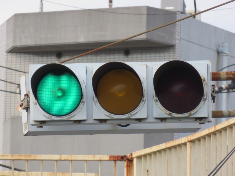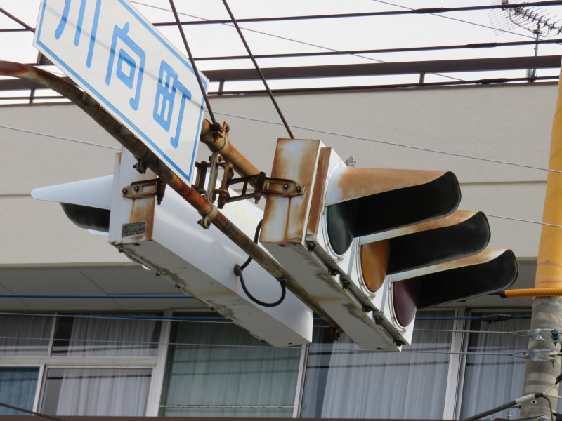 | 川崎市の歩道橋のある交差点に2基セット角形300mm1基と片面300mmが1基あります。歩道橋からのアングルが撮れる貴重な(?)交差点です。昭和53年製の金属製銘板です。