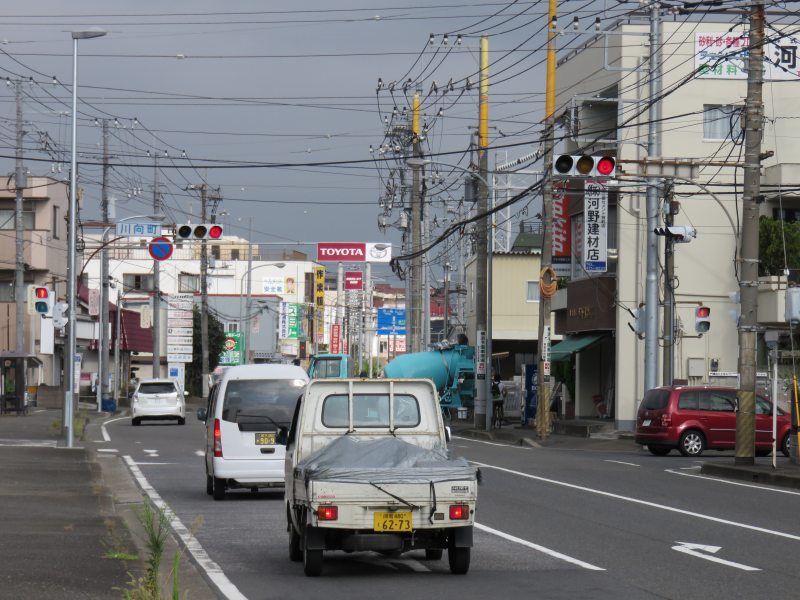 平塚市にも2基セット角形が1基残存していました。この交差点は縦丸型の1基以外全て京三300角形となっていて他に2基セットでない普通の角形が2基あります。昭和53年製です。