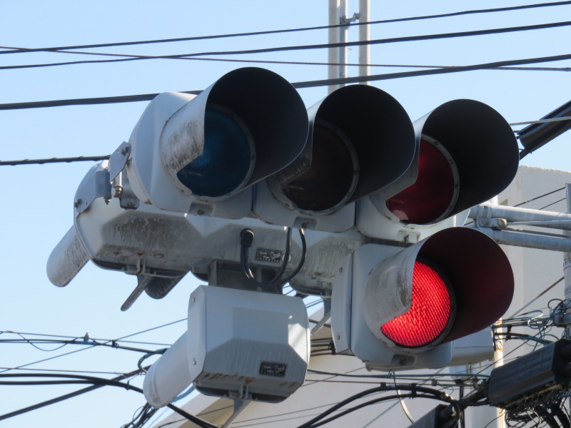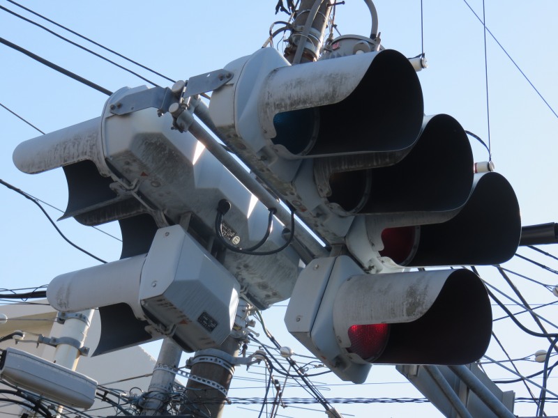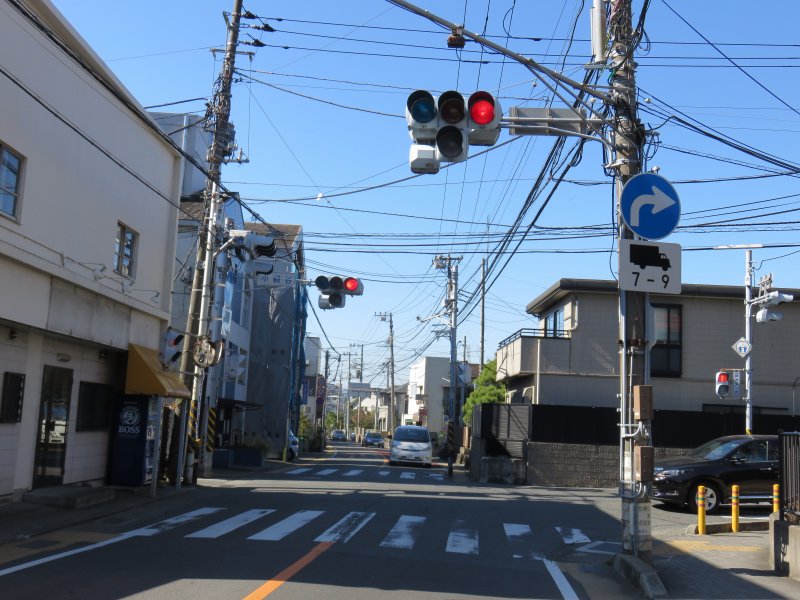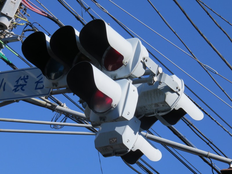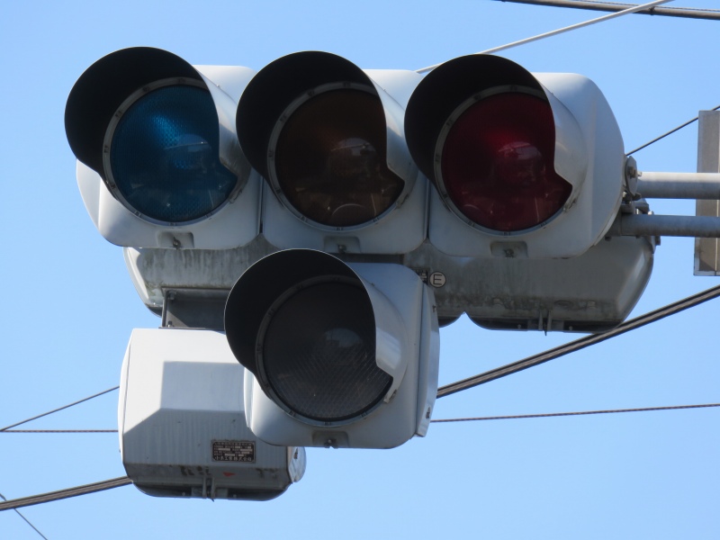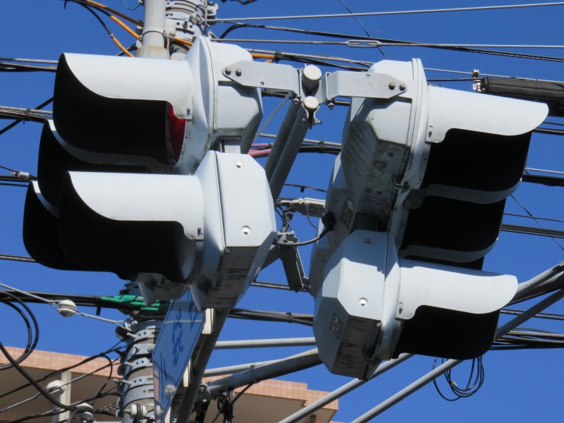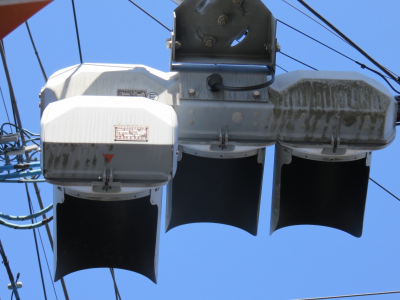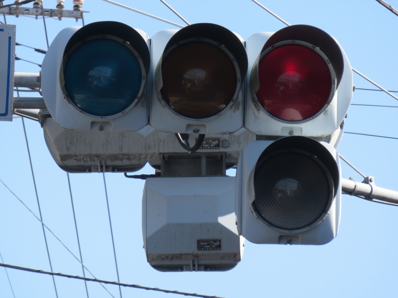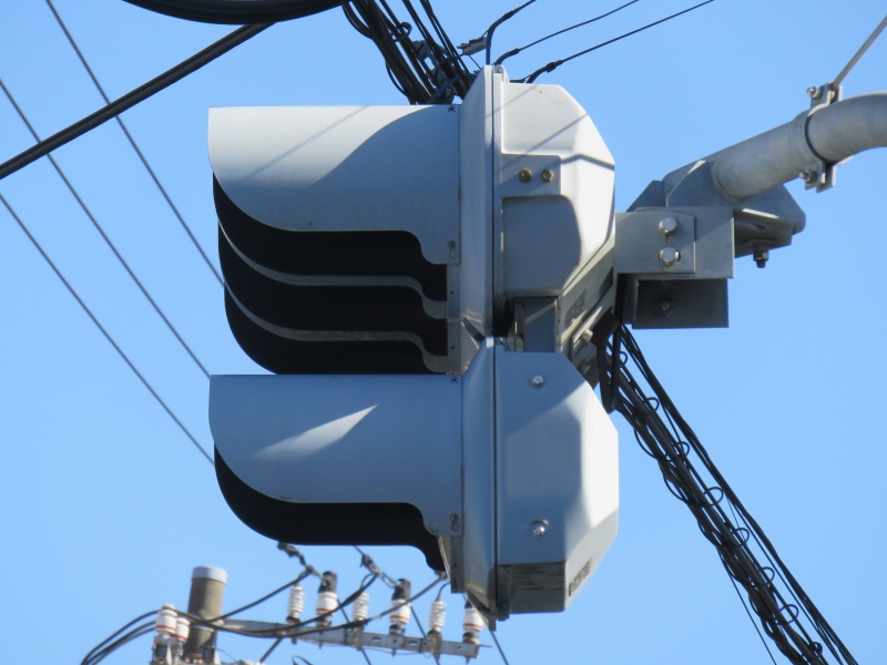 鎌倉市内の交通量の多い交差点に設置されているおまけの1灯です。この交差点は県内の他にあるおまけの1灯がある交差点とは随分違います。 まず全ての信号機が普段はおまけの1灯を点滅させて制御している点が非常に珍しいです。 主道側の1方向だけ黄点滅で、他の2方面は赤点滅となっています。歩行者が押しボタンを押すと通常の黄→赤と点灯し、歩行者の信号機が全方向青になる歩車分離制御です。 しかし、非常に交通量が多く、手狭な交差点で右左折が非常に多く(だから青進行させないのでしょうが、)常に渋滞が発生しているような状態になってしまっています。 灯器は小糸アルミ+小糸集約LEDとなっていてその点も珍しいですね。あわせて6基もこの設置があります。 |