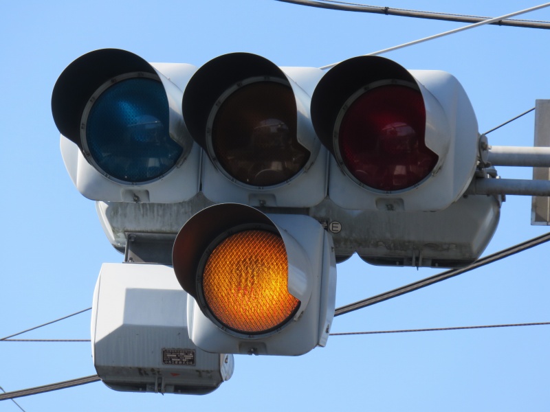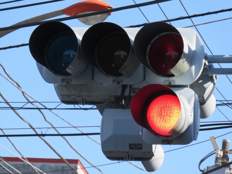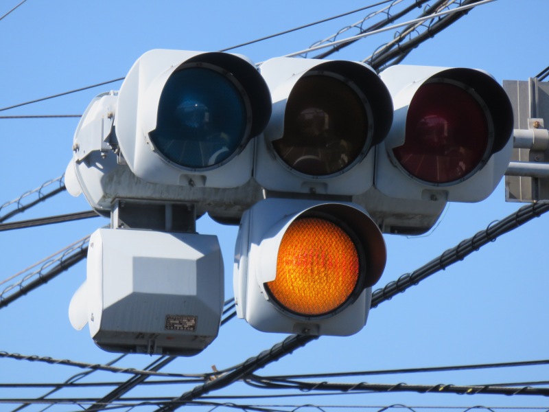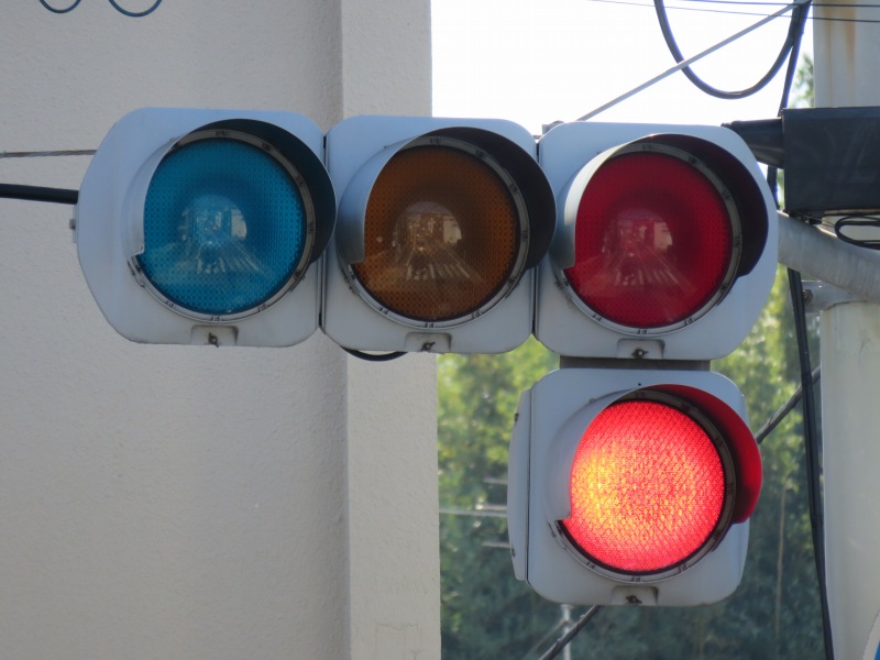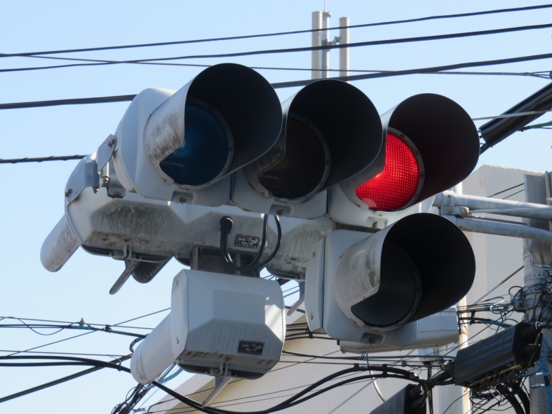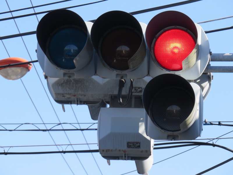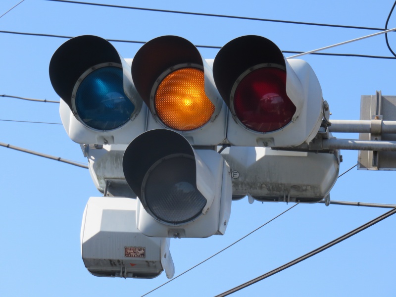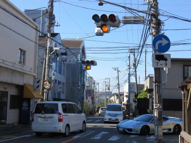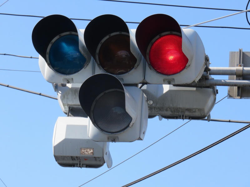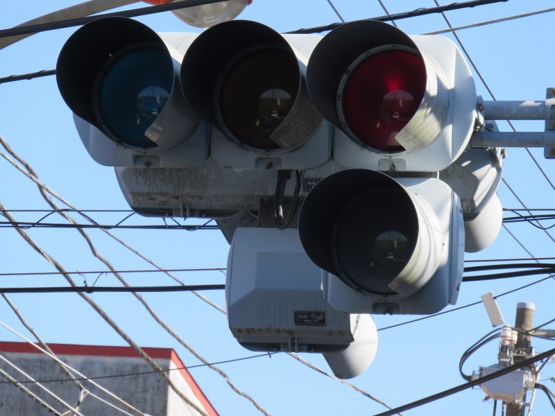 鎌倉市内の交通量の多い交差点に設置されているおまけの1灯です。この交差点は県内の他にあるおまけの1灯がある交差点とは随分違います。 まず全ての信号機が普段はおまけの1灯を点滅させて制御している点が非常に珍しいです。 主道側の1方向だけ黄点滅で、他の2方面は赤点滅となっています。歩行者が押しボタンを押すと通常の黄→赤と点灯し、歩行者の信号機が全方向青になる歩車分離制御です。 しかし、非常に交通量が多く、手狭な交差点で右左折が非常に多く(だから青進行させないのでしょうが、)常に渋滞が発生しているような状態になってしまっています。 灯器は小糸アルミ+小糸集約LEDとなっていてその点も珍しいですね。あわせて6基もこの設置があります。 |