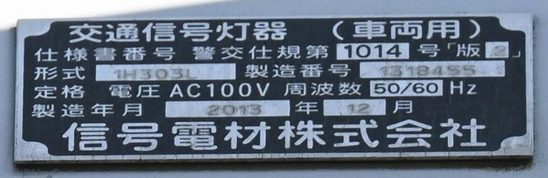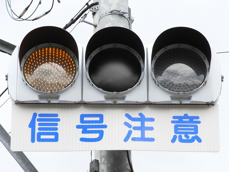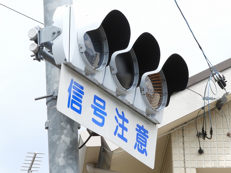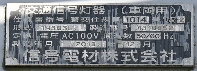 | こちらは電材薄型ベースの予告信号です。電材の薄型世代の黄黄黄は真ん中の黄の部分に蓋がされている仕様のようです。2010年製。 | |