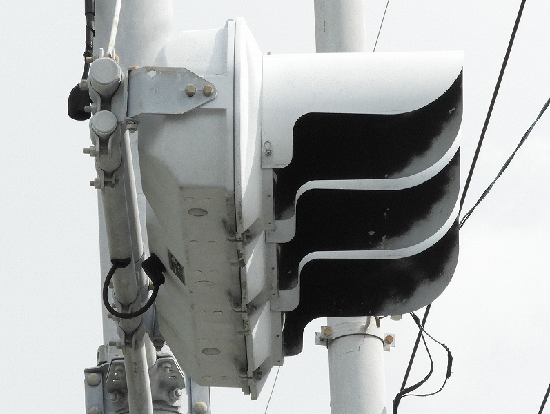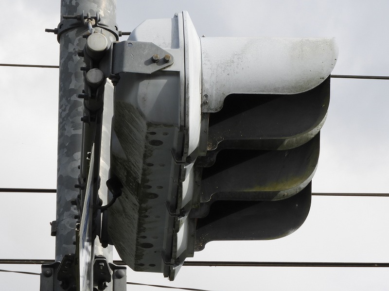 | 小糸の浅い庇のタイプのアルミ灯器ベースの黄黄黄です。熊本県内でちらほら見られます。ここのものは信号注意の表示板がなぜか付いていません。平成12年製。 | |