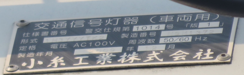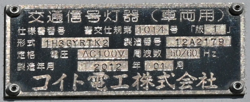 | こちらは小糸薄型ベースの黄黄黄の予告信号です。形式は1H3YYYTK2となっており、黄黄黄であることを示しています。使用しない真ん中の黄の位置の素子は入っているようです。2009年製です。 | |