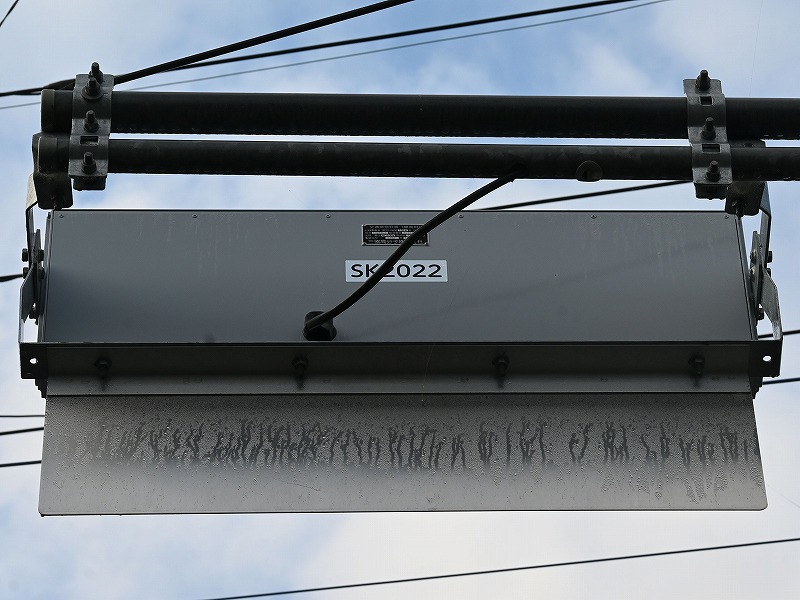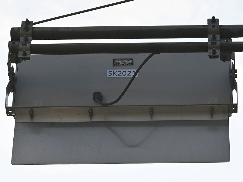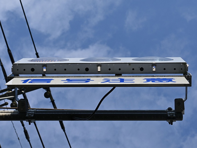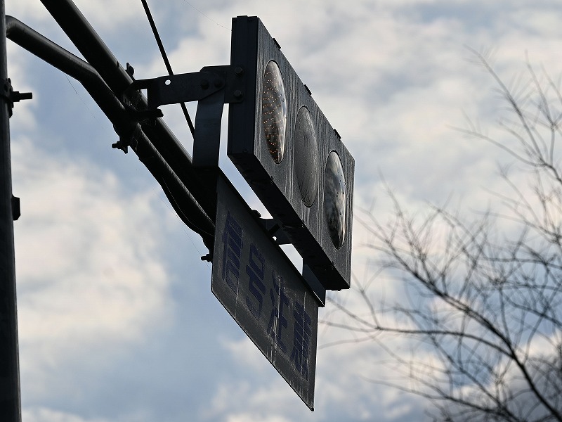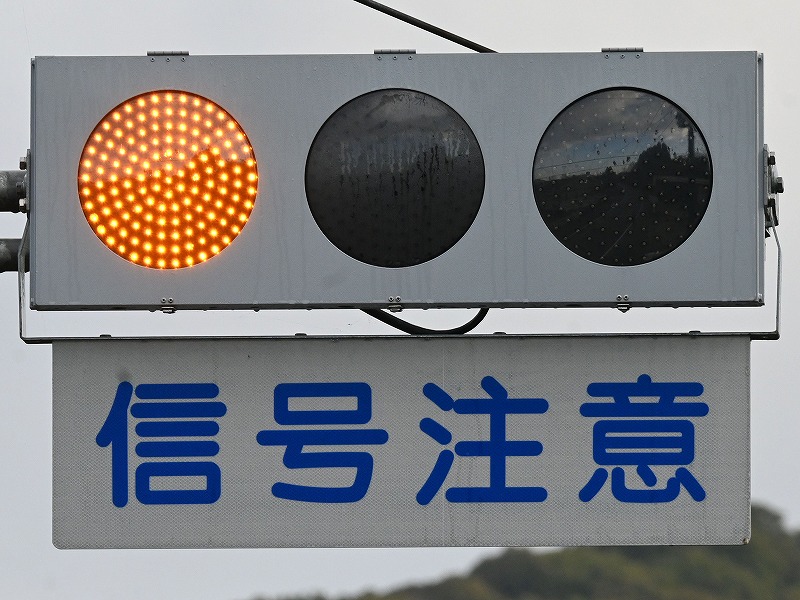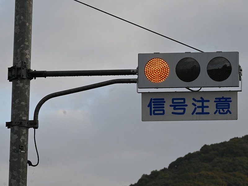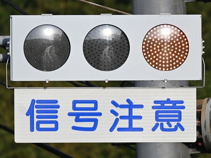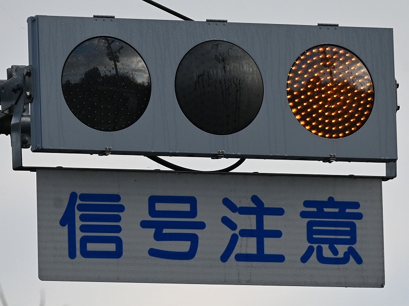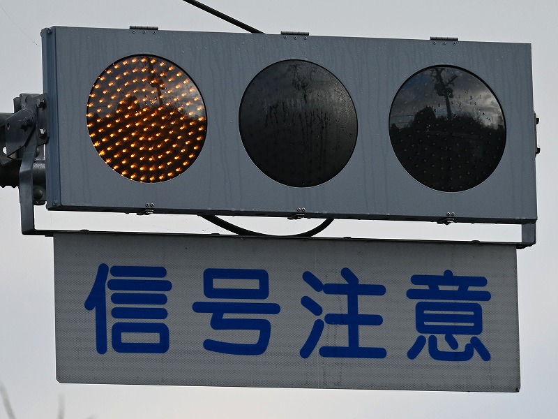 | 熊本県内では黄黄黄配列の予告信号が採用されていますが、最近は撤去・廃止が進んではいるものの、更新されて引き継がれた事例もたくさんあります。近年熊本県内の県北の山鹿市・玉名市・南関町等のエリアは三協の低コストがたくさん設置されてきていますが、ついに三協の低コストの黄黄黄も登場しました!三協の低コスト自体、他には大阪府・鹿児島県等にあるものの一部地域の設置に留まっており、三協の低コストで、かつ、変則配列となると熊本県のこの黄黄黄くらいではと思われます(また今後も三協の低コストの変則配列が他県で設置される可能性は低いと思います)。動作は左右の黄が交互に常時点滅し、真ん中の黄は点灯しません。見た感じ真ん中の黄の位置には素子が入っていないように見えます。現在熊本県内3箇所で設置されており、まず紹介するのは山鹿市内の国道443号沿いの押しボタン式交差点にあるものです。2022年1月製で形式は1H253LAとなっています。 | |