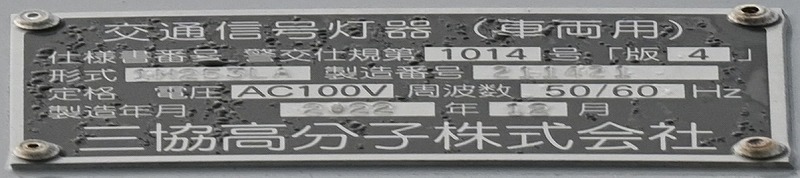 | 続いて南関町の県道の押しボタン式交差点にあるものです。こちらは2022年12月製です。なお1番、2番の他、未撮影ですが玉名市にも設置されているそうです。 |