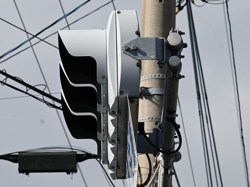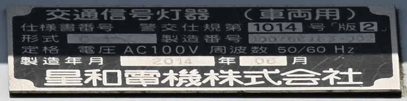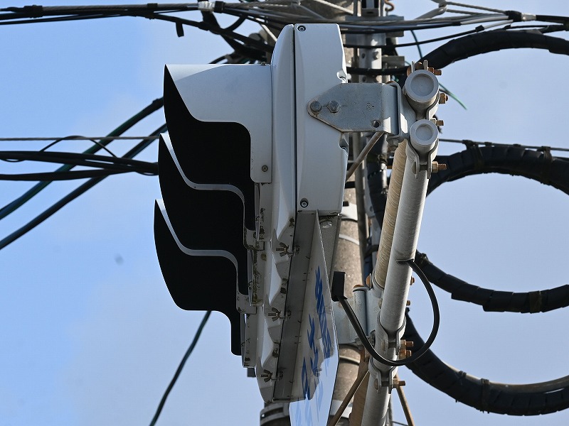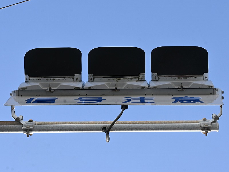 | この交差点は国道208号沿いの交差点で、国道側に交差点手前両側に1基ずつ計2基設置されています。こちらも筐体は電材ですが、LED素子が星和自社製の配列となっています。1番と違い、真ん中の黄の位置は使用しないものの、LED素子は入っているようです。2014年製です。 | |
