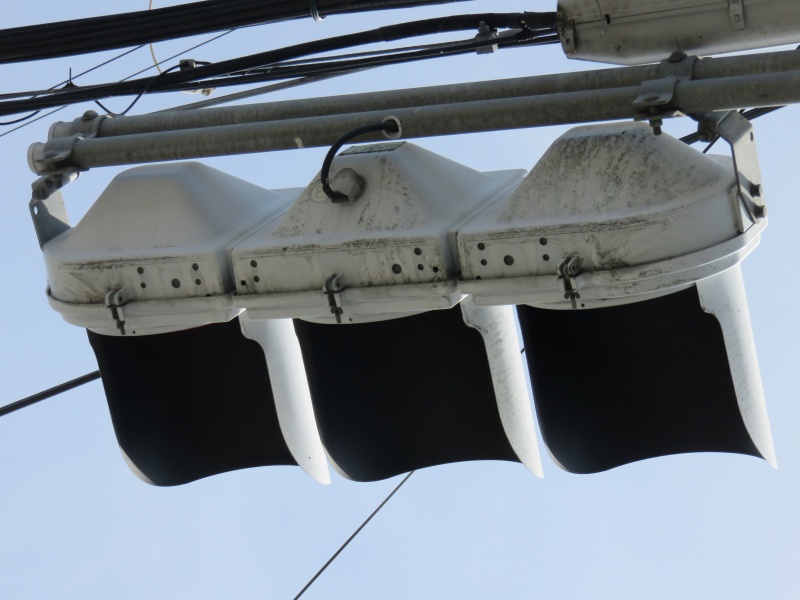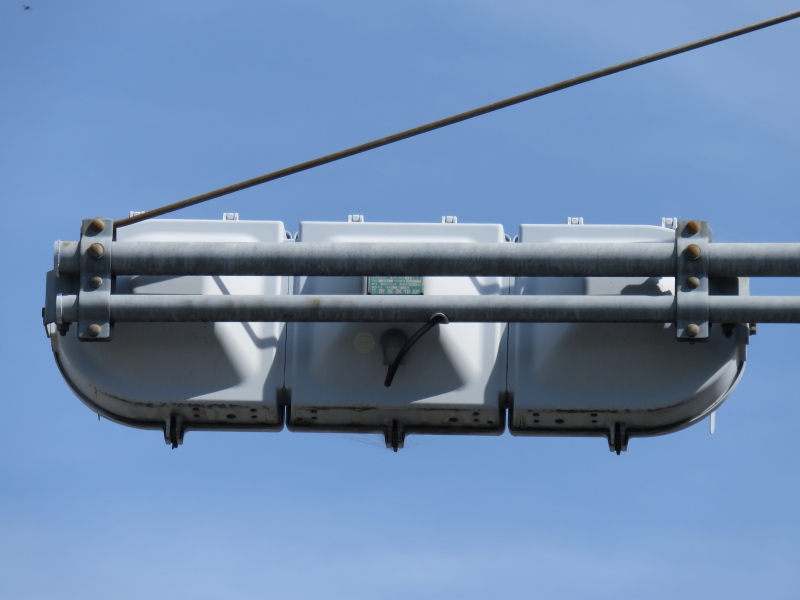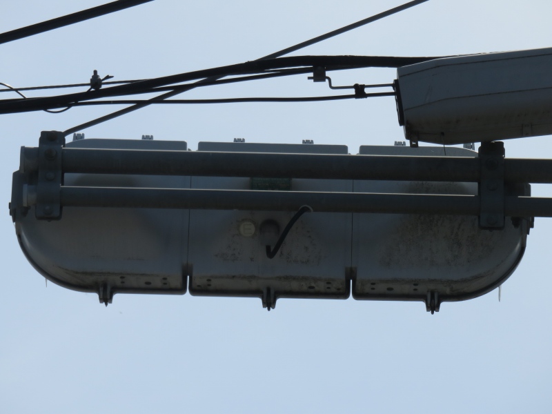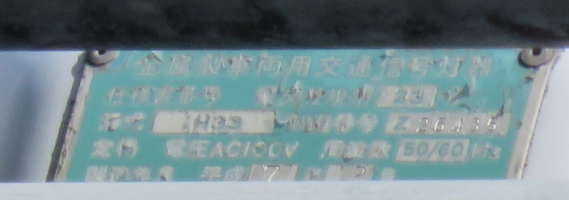 電材分割セパ(OEM)+蛇の目レンズの組み合わせです。この交差点7基全てがこの灯器となっています。通常電材セパでOEMのものはレモンレンズかブツブツレンズが大半なので、違和感すらあります。奈良県にごく僅かにあるようです。京三製の緑銘板となっていて平成7年製です。