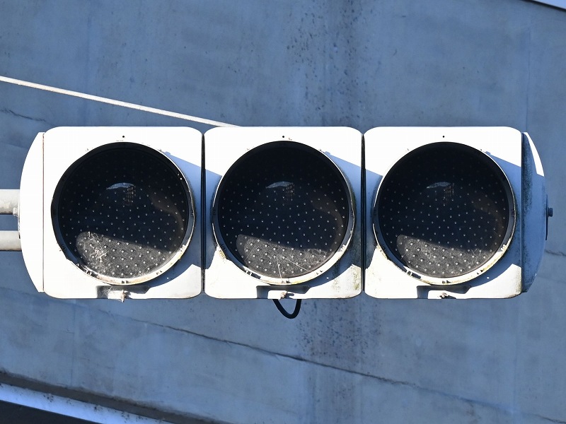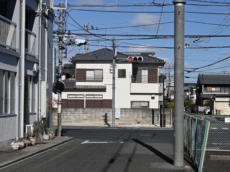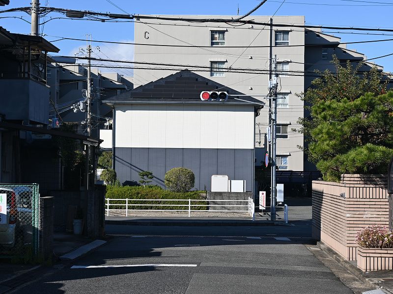 | 2025年11月29日撮影 奈良市内の住宅地の丁字路交差点が2つ合わさったような形状の交差点に設置されている赤黄赤灯器です。元々は日信分割多眼の赤黄赤でしたが、2025年灯器が交換され、なんと交換後も赤黄赤灯器が引き継がれました!灯器はどこからか転用された小糸の従来型LED(DK2タイプ)の赤黄赤です。庇は電材薄型LEDのものが使用されています。まさか2025年になっても赤黄赤が引き継がれるとは思いませんでした。交差点の他の灯器は日信製の低コストに更新済なので、この灯器も制御器交換のタイミングで更新ないしサイクル変更されてしまうかもしれません。2004年製で、形式は1H3GYRDK2となっています。こちらも黄は点灯しません。 | |