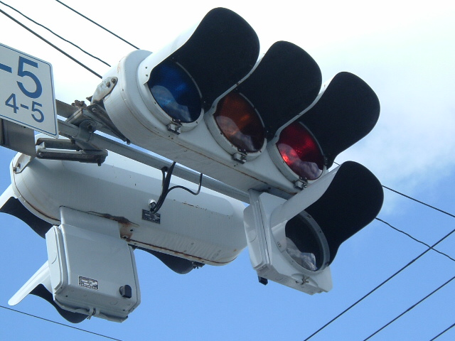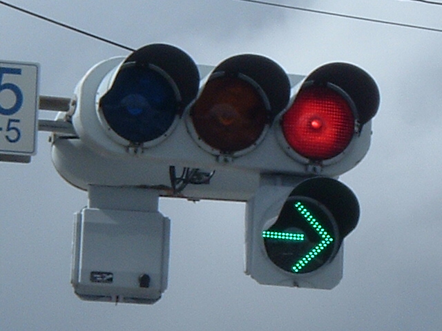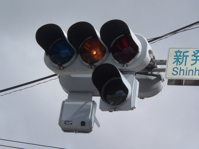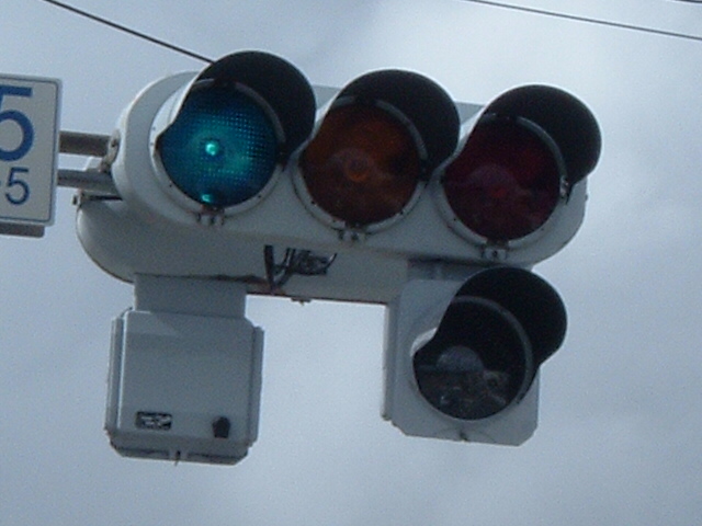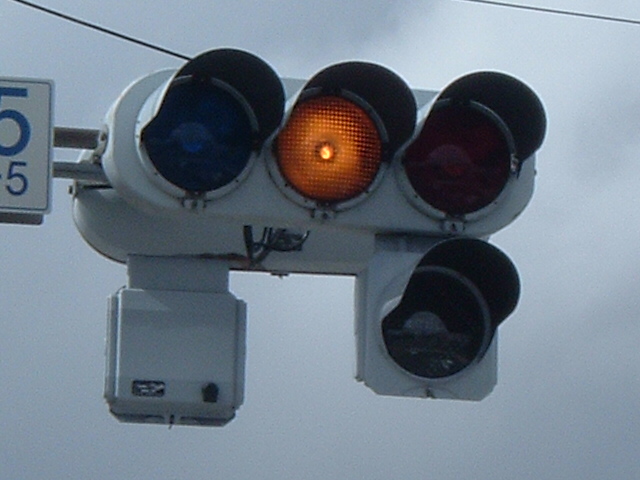 本灯器が薄型LED信号や電球薄型ならば、矢印が薄型というのも違和感が感じられませんし、普通にありますが、主灯器が電球灯器で、矢印が薄型矢印という組合せのものをここでは紹介します。