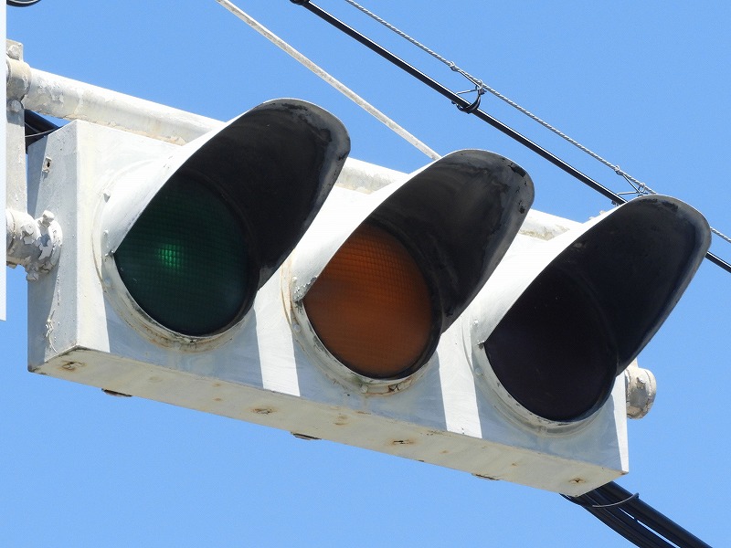 | 静岡県に点在している日本信号製の角形です。交通信号灯世代のものはだいぶ減りましたが、この車両用銘板のものはいくらか残っています。磐田市役所前の交差点には2基残っていました。昭和48年製。