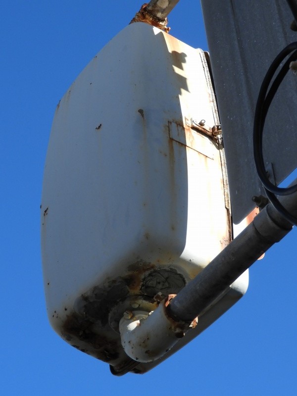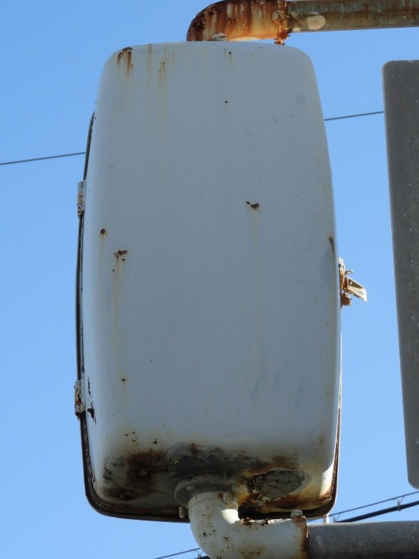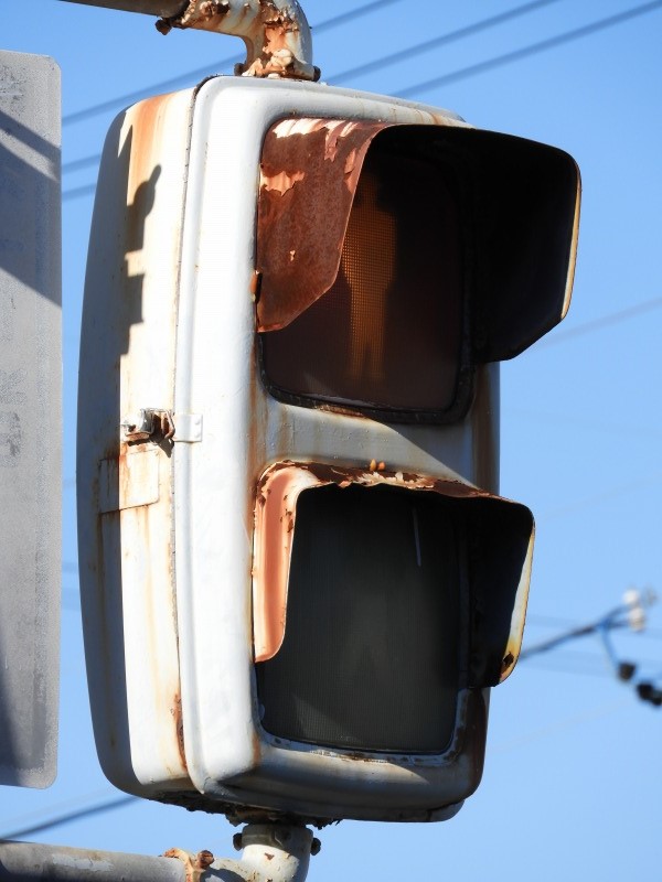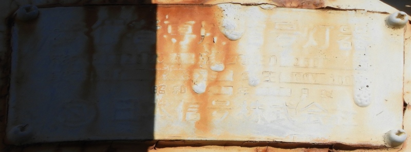浜松市に残っている非常に古い歩灯です。レンズは既に交換されていますが、銘板が横に付いていて、青の庇が短いタイプで全国的にもほとんど残っていないタイプです。製造年月は残念ながら解読不能ですが、昭和42年頃の製造かと思われます。