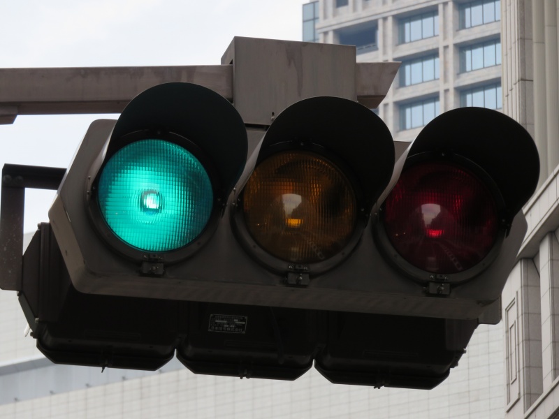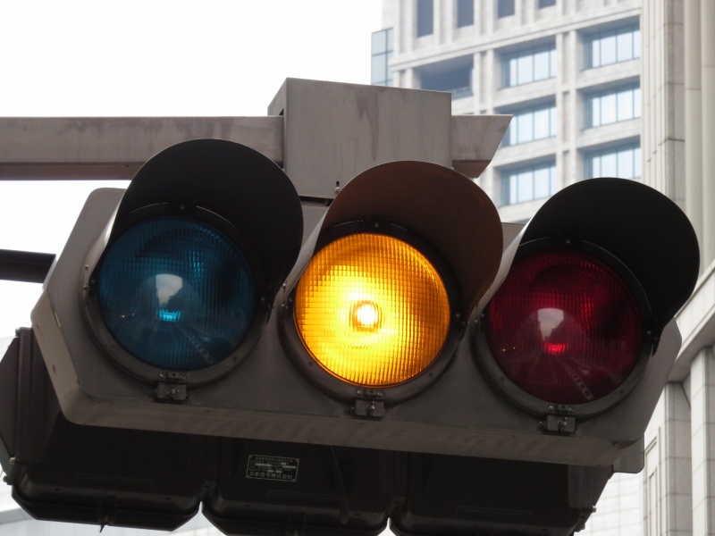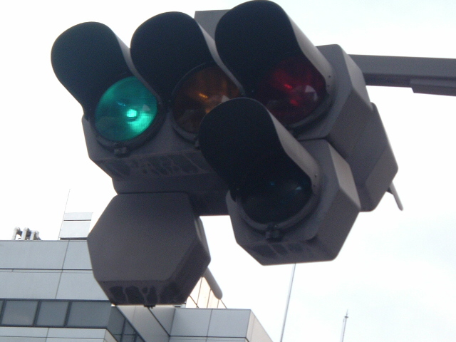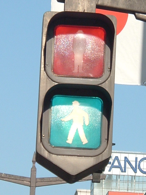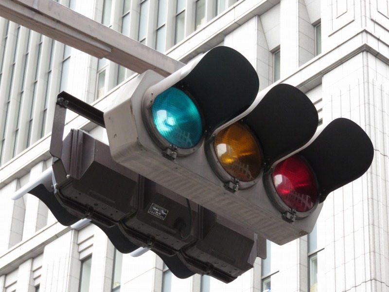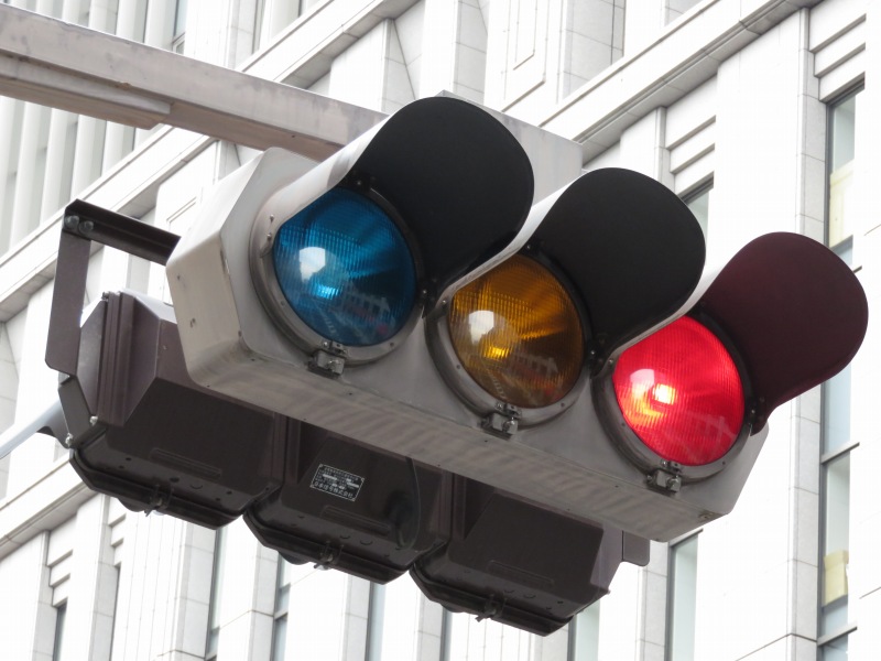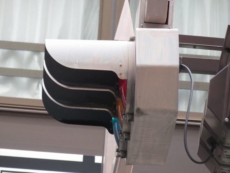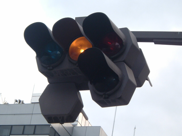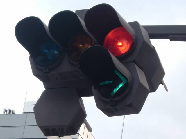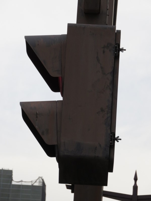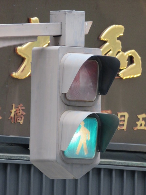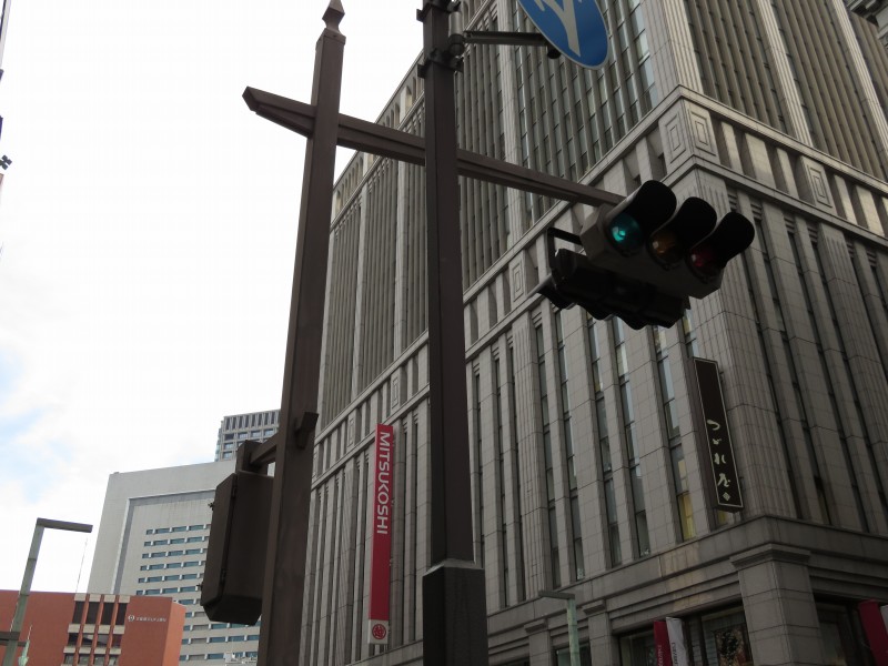 | かつて銀座・丸の内周辺の中央通りに多かった六角形のデザイン車灯と五角形のデザイン歩灯です。都心ということもあり、撤去が進み、現在では三越前のここ1基のみとなってしまったようです。裏には転用灯器が増設されています。以前は矢印付きのものなどもありました。