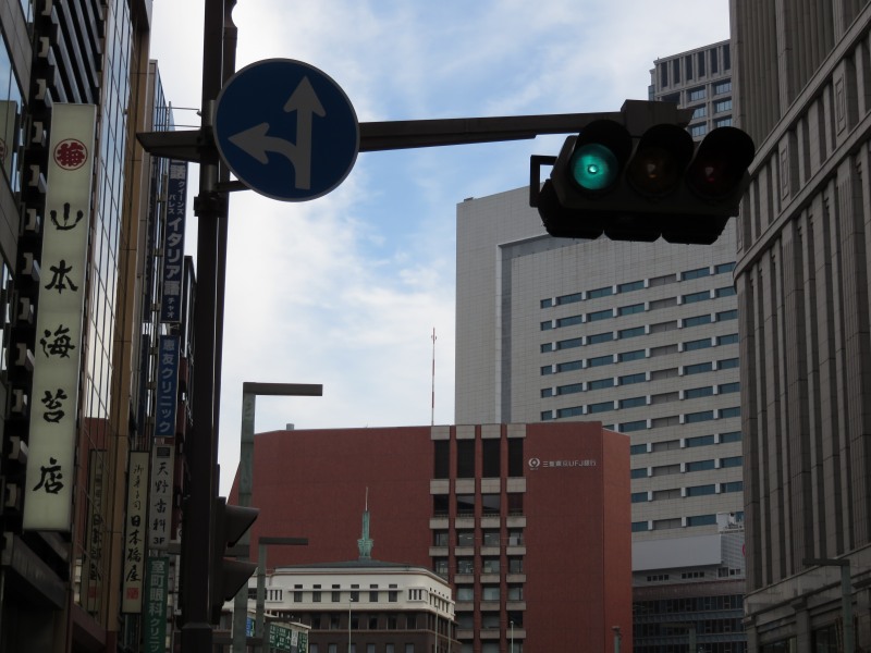 2009年時点では日本橋・京橋周辺の中央通りにもオリジナルデザインが残っていました。この交差点には珍しく矢印付きのものもありました。