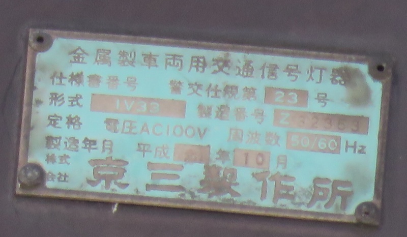 京三の緑銘板で、平成元年製です。このデザインも富山らしく灯器上部接続となっています。